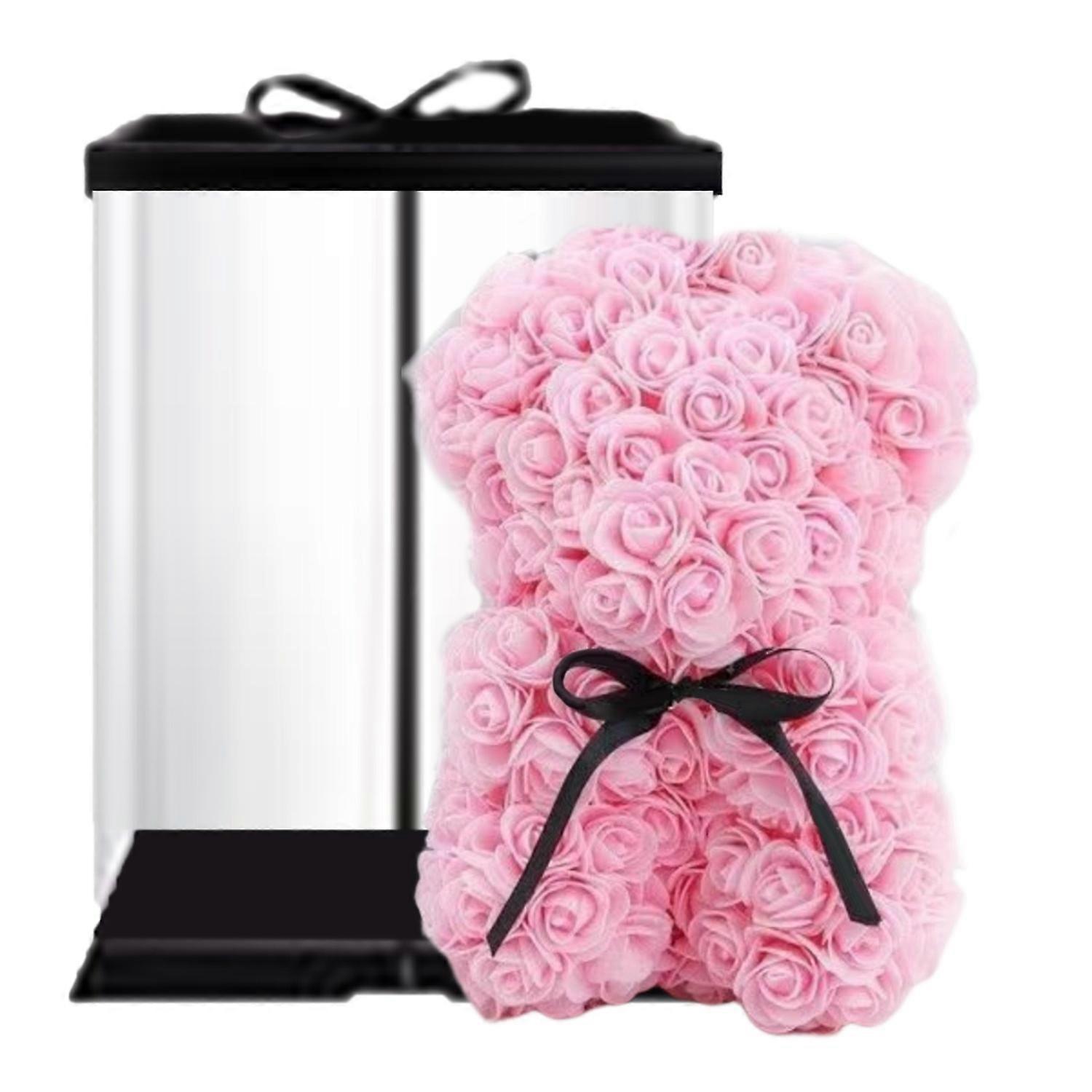 Rose Bear Gift 11-inch Artificial Flower Rose Bear with LED Light Valentine's Day Preserved Flowers