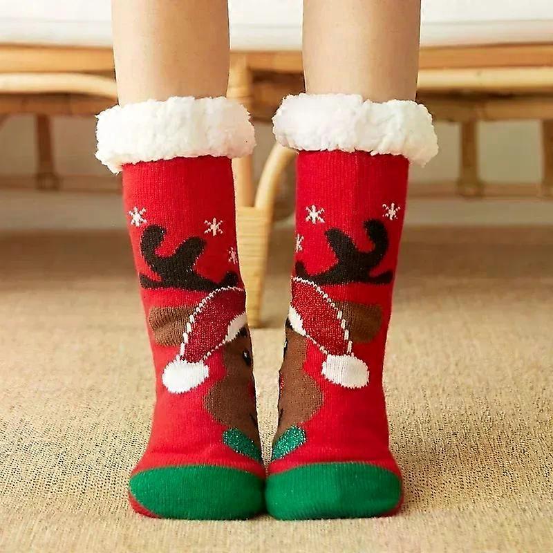 Christmas Gift Slipper Socks Women Thermal Winter Warm Plush Non slip Grip Sleeping Floor Short Sock Fuzzy Fluffy Female Cartoon