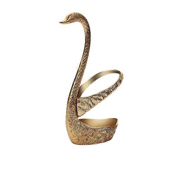 Creative Swan-Themed Zinc Alloy Storage Rack, Korean Set of 304 Stainless Steel Fruit Forks, Cake Fork (Swan Feather (Gold))