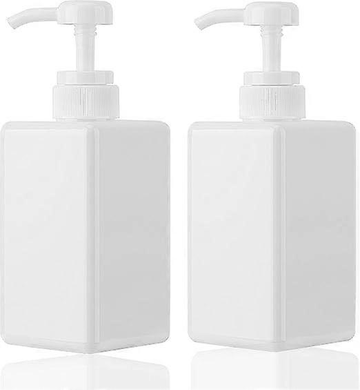 450ml Pump Bottle Dispenser, 2Pcs Refillable Square Plastic Lotion Dispenser Empty Lotion Pump Bottle for Lotion