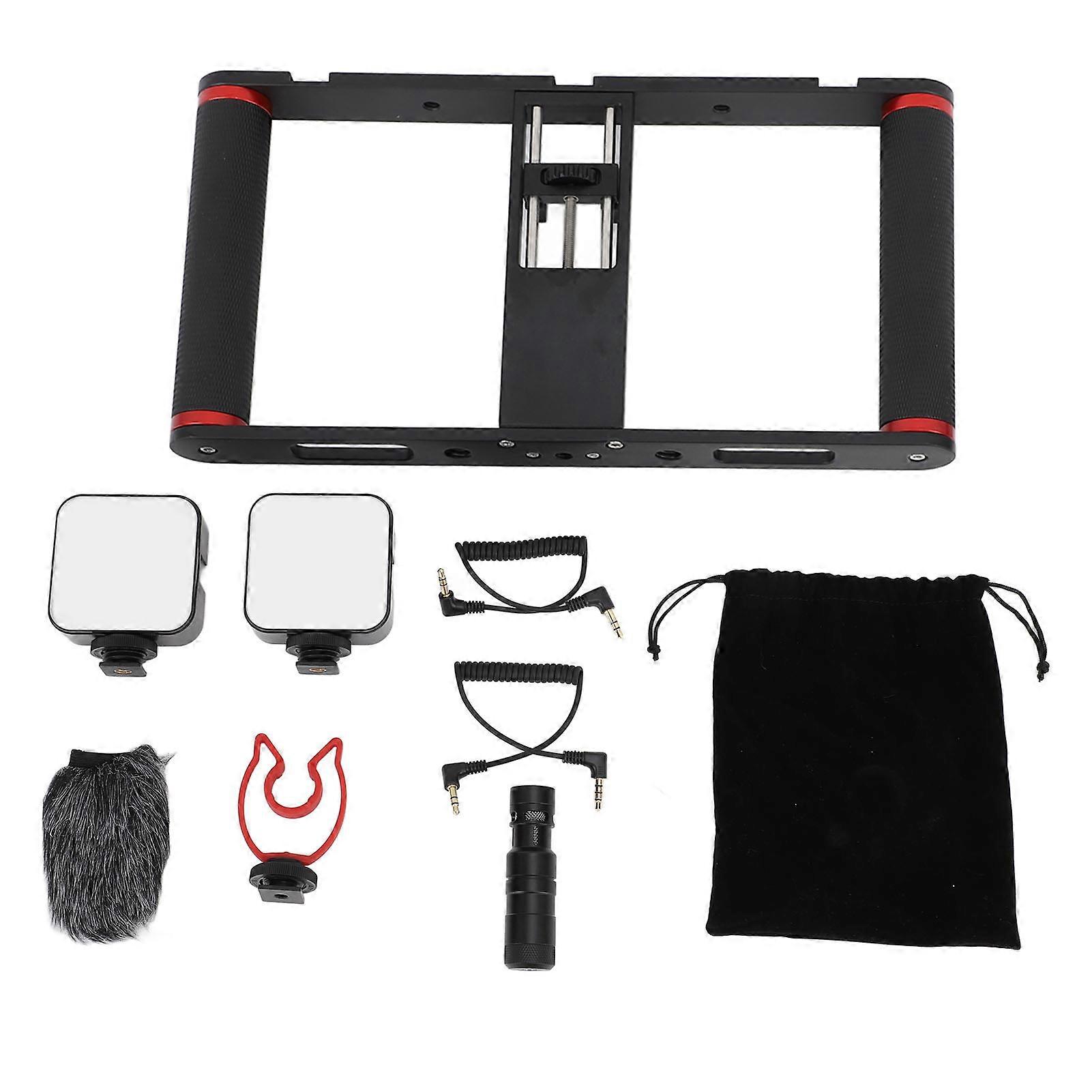 Video Rig Multifunction Lightweight Mobile Phone Vlogging Cage Microphone Kit with Fill Light for Live Stream