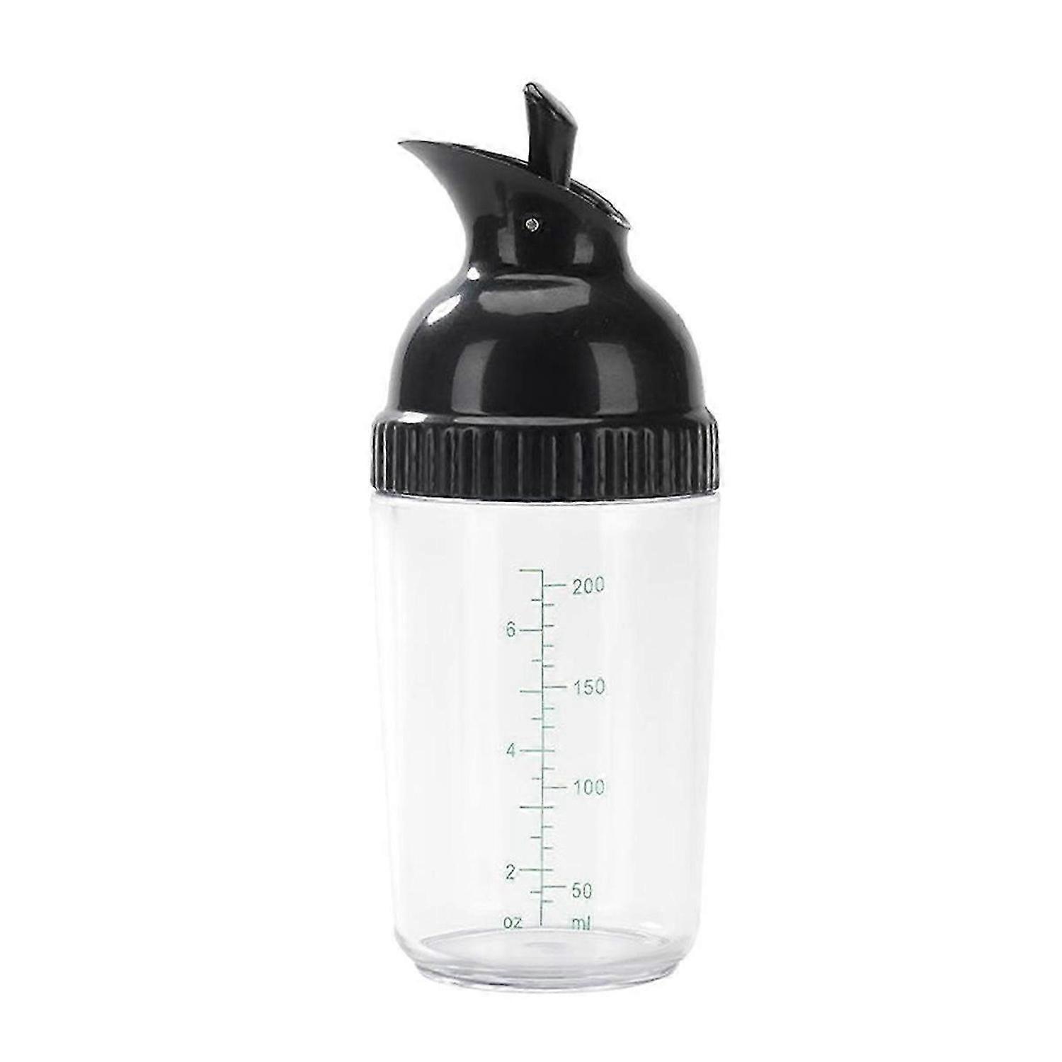 Premium Material: The salad dressing shaker is made of high-quality PP, high-quality. Make Sauces-mixing Easy: Use the measurement marks on the portable salad dressing bottle to prepare your own recipe. Effortless & Convenient: One-handed open/close. The lever flips back to pour and forward to seal. Easy to Clean: The salad dressing dispenser can be used to store ingredients for making sauces and sauces in the refrigerator. The shaker is dishwasher safe. Capacity:200ml Colour:A: parent & Black/B: parent & Green Material:PP Size:5.5x17cm<br><br>Package Contents: 1 * Salad Dressing Shaker Dispenser Only the above package content, other products are not included. Note: Light reflection and different displays may cause the color of the item in the picture a little different from the real thing. The measurement allowed error is +/- 1-3cm.