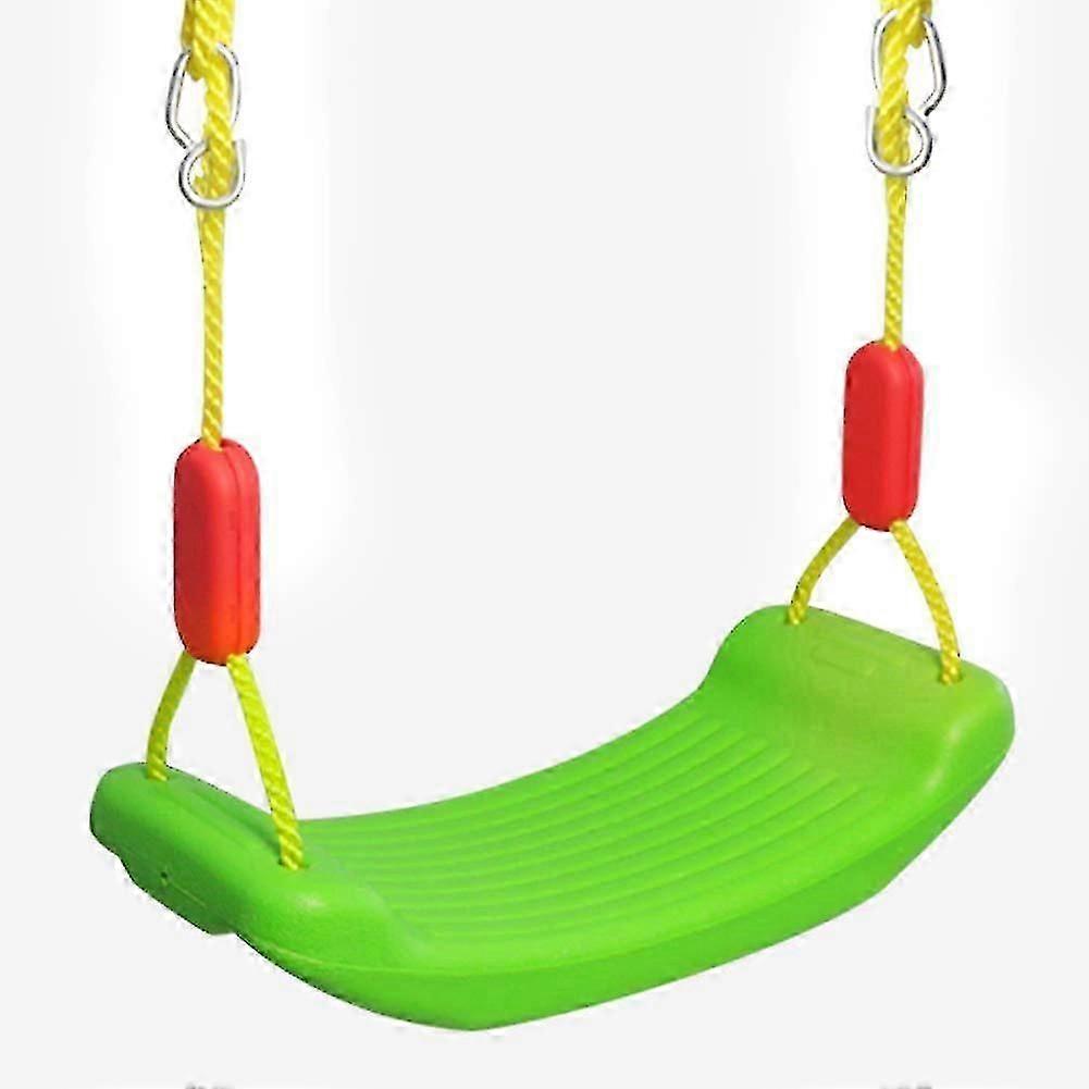 Swing set with the adjustment buckle, range can be adjusted to 107-173cm. Mom and dad can adjust the suitable height for children. Maximum load capacity of the child swing seat is 100 kg, you can let your child play without worry. The top of the swing prop with a swing carabiner, which can be connected with the horizontal bar, which can be firmer, let children have fun, and parents are more comfortable. Swing seat are easy to carry, whether you are indoors or outdoors, children can play this swing seat with friends, improve their social skills, of course, under adult supervision . is made from UV resistant plastic, it will not fade or become brittle over time. The seat of the childrens garden game is green, the color is shiny, and it is a non-slip matte board.