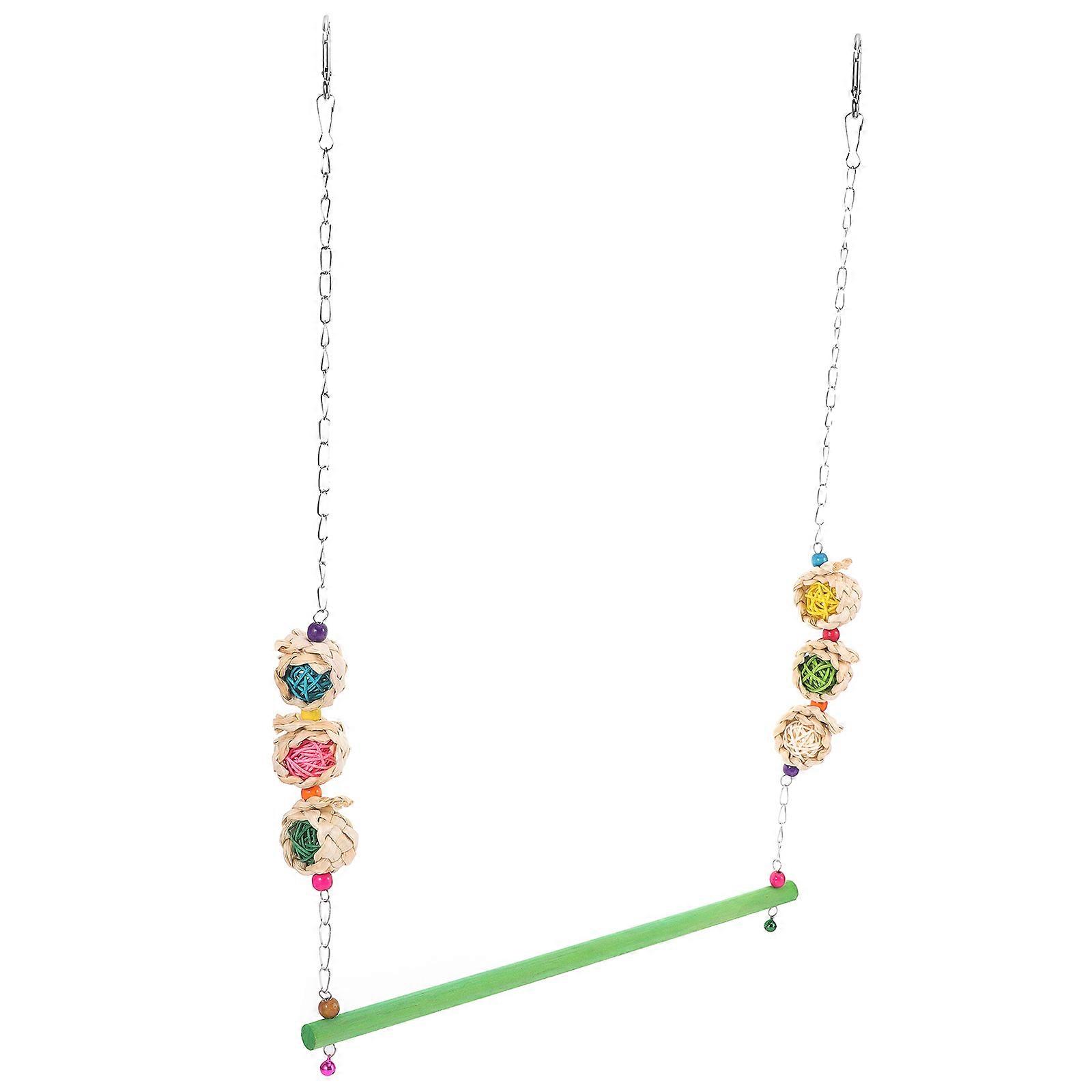 Wooden Bird Swing Plaything with Corn Leaves and Rattan for Pet Birds Assorted Color