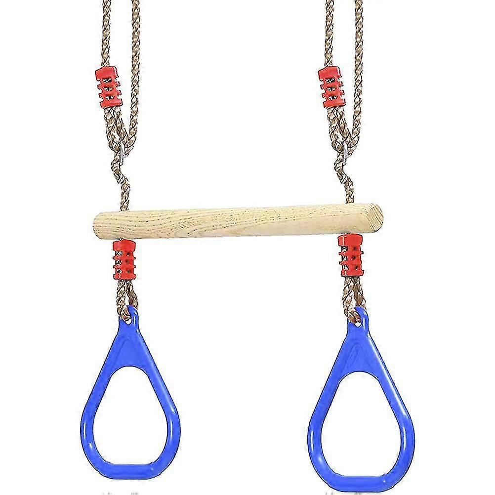 Wooden Trapeze Swing for Children Outdoor 120 kg, Kids Gym Rings Set Playground Accessories, Multifunctional Backyard Swing Set