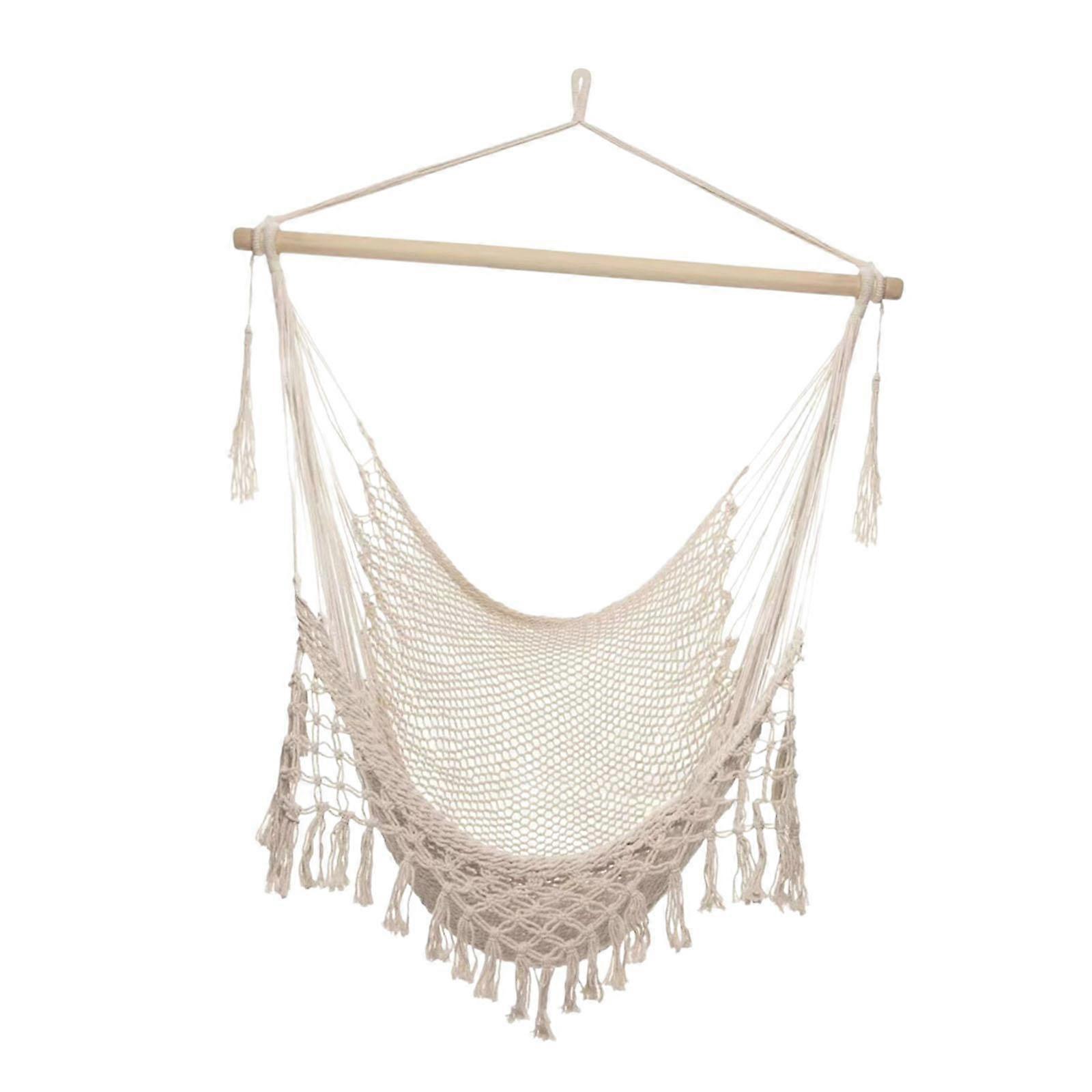 Boho Hanging Hammock Chair Swing with Tassels for Yard Indoor Outdoor Garden
