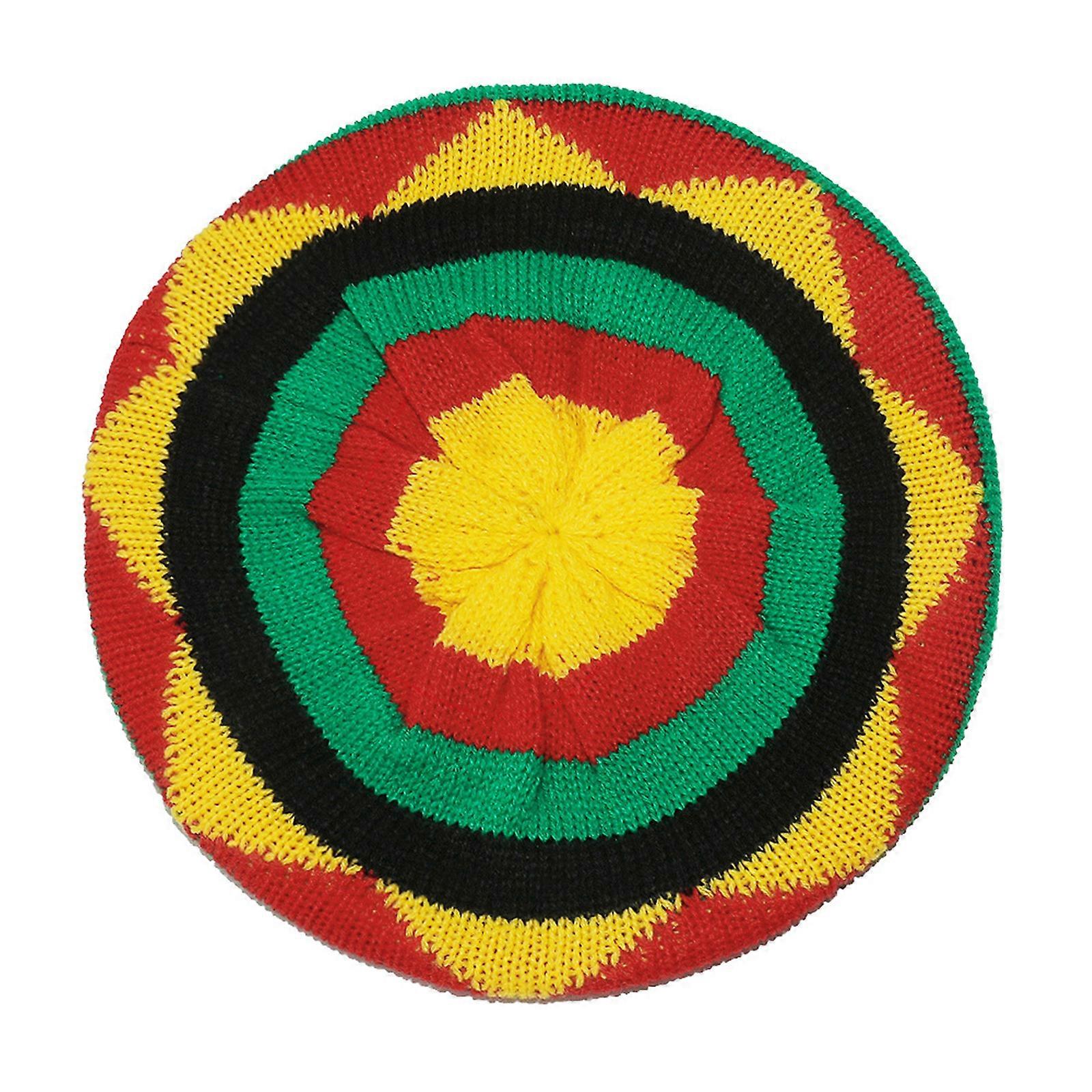 Comfortable Stretchable Jamaican Beret Hat Rainbow Color Knitted Reggae Hat Machine Washable Travel Friendly Headwear Multicolor