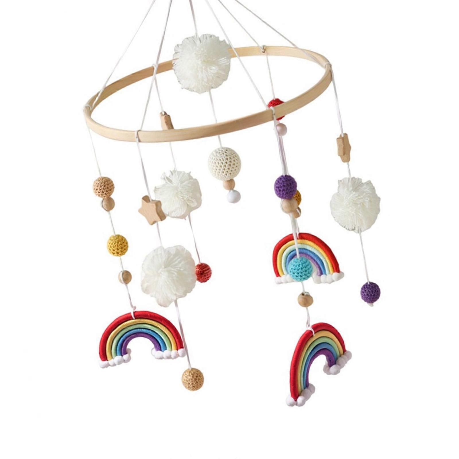 Nordic Rainbow Star Crib Mobile Soft Cotton Wooden Baby Bed Bell Toy Safe Sensory Visual Stimulation Hanging Pendant Toy Multicolor