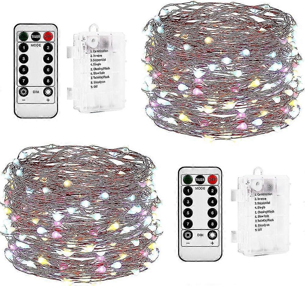 Battery Operated String Lights. 2 Pack 3*aa Battery Powered Copper Wire Remote Control Timer Waterproof Led Firefly Lights For Bedroom. Garden. Xmas.