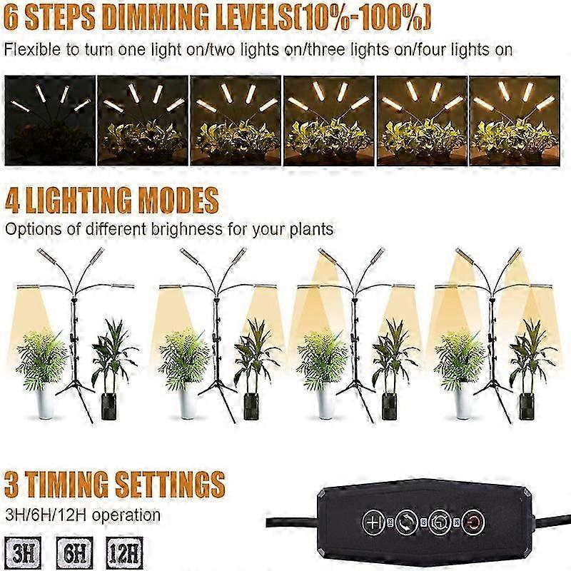 Horticultural LED Grow Light with Tripod, 105 LED Full Spectrum Plant Grow Light, LED Grow and Flower Grow Light with Timing, 4 Modes, 6 Dimmable Leve