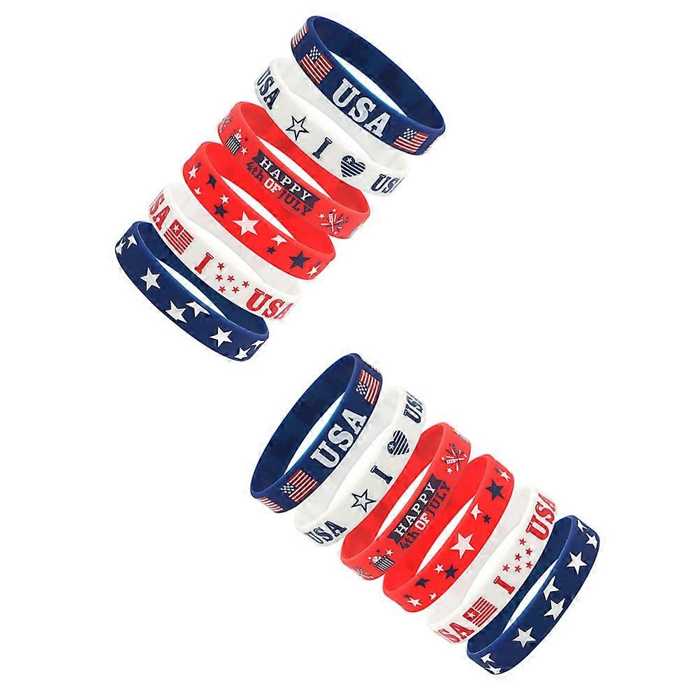 Independence Day Theme Silicone Bracelets 12 Pcs Round Wristband For Patriotic Events Assorted Color Accessories