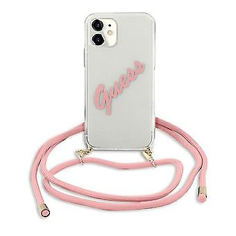 Guess Vintage Script Apple iPhone 12 Mini Pink Kette Crossbody Hard Case Cover Schutzhülle Etui