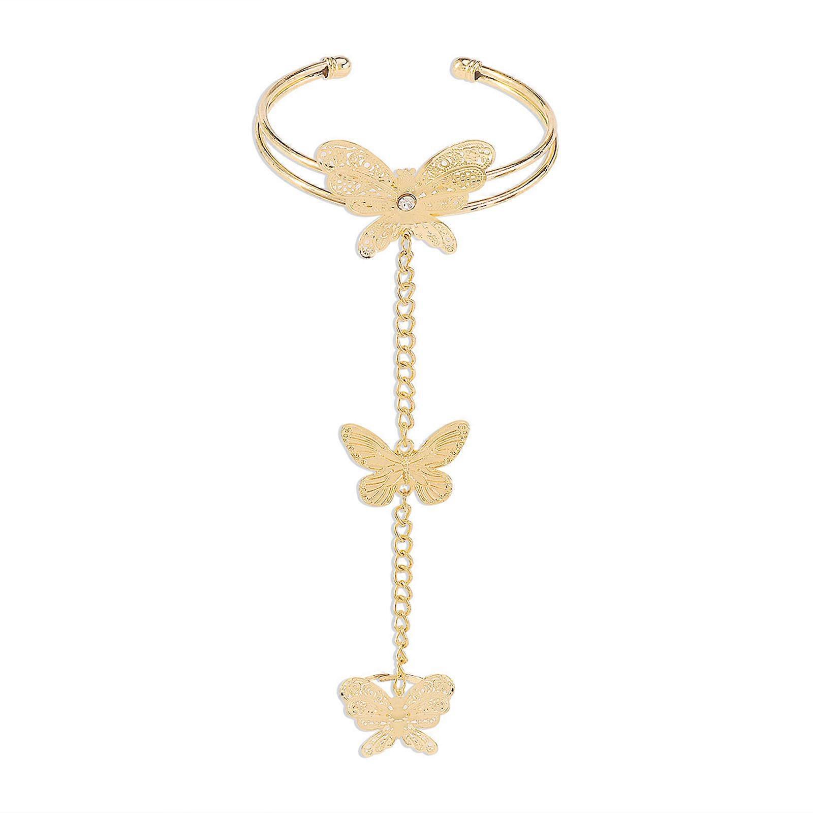 Snake Finger Ring Bracelet Hand Harness Chain Bracelet Adjustable Chain Bracelet Accessoris for Women Girls Gift Party Gold Butterfly Brace