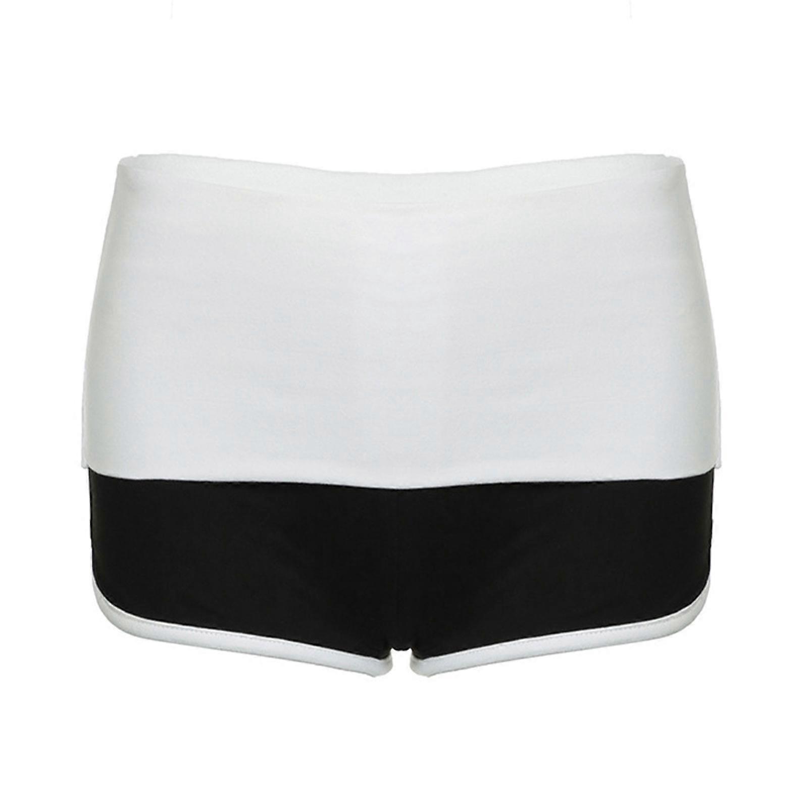 Contrast Patchwork Fold Over Slim Yoga Shorts Women High Waist Sports Casual Short Pants Wide Waistband Workout Shorts White S