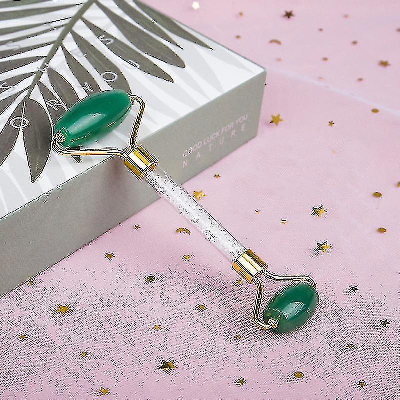 New Rhinestone Jade Roller Facial Massager Rose Quartz V Face Rollers Anti-Cellulite Massager Natural Stone Neck Care Beauty Set