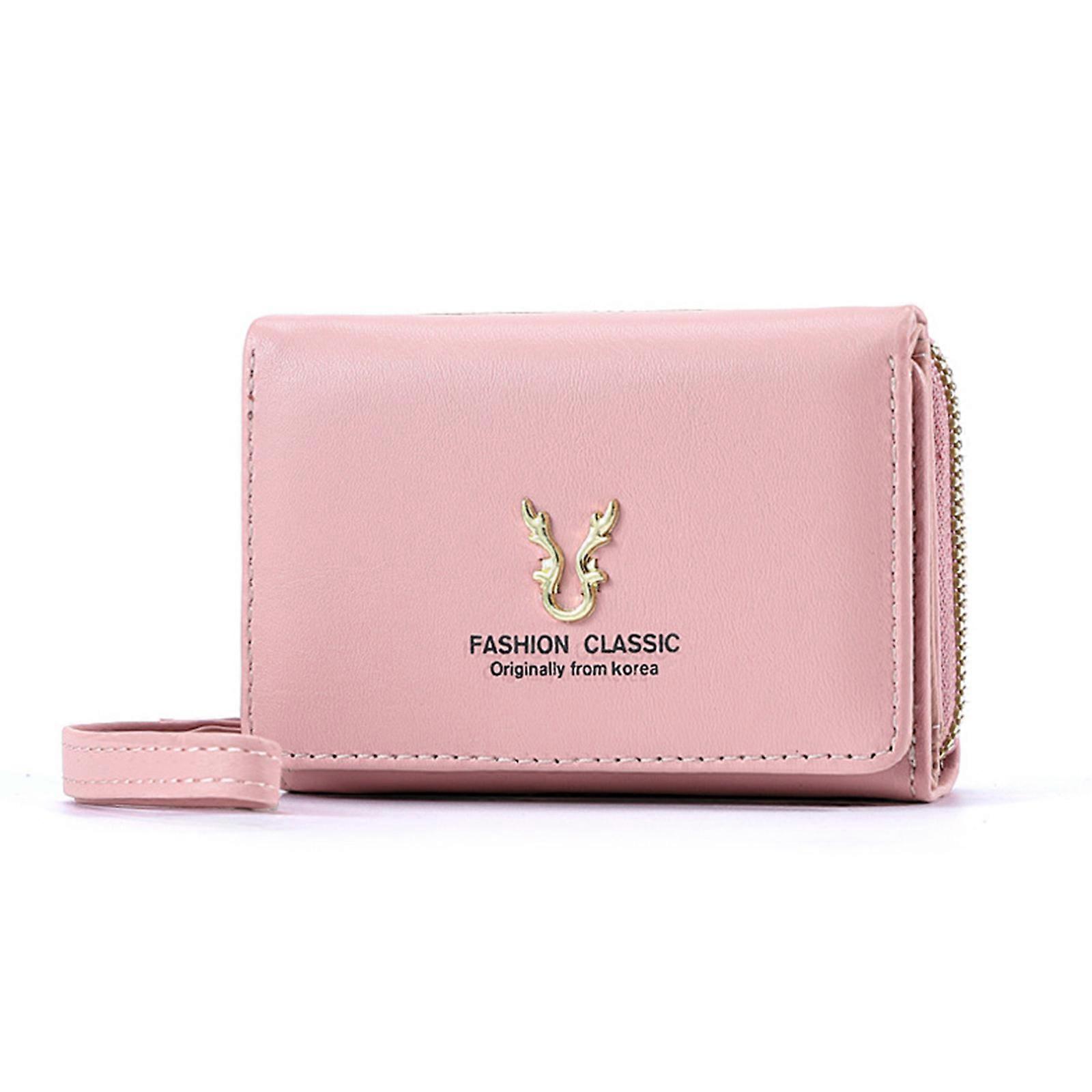 Portable Credit Card Holder PU Leather Wallet Coin Purse for Women and Girls Small Change Pocket Money Bag Pink