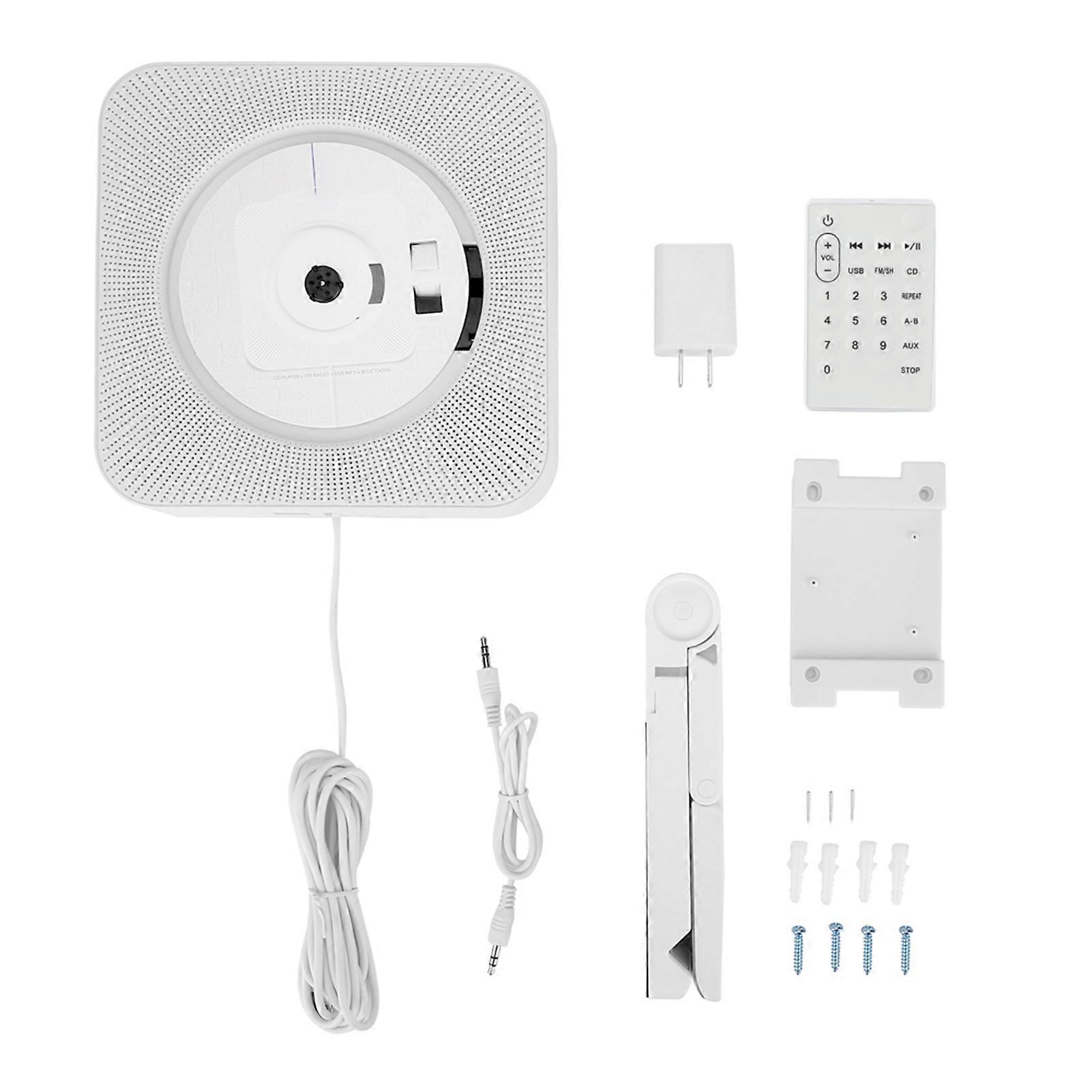 Portable Wall Mounted Bluetooth Remote Control CD MP3 Player FM Radio with US Plug (White) NO.3967