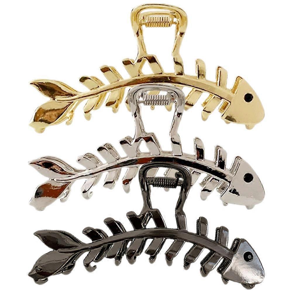 Stainless Steel Fish Jaw Clips Sleek Design Hair Accessory for Office 3Pcs