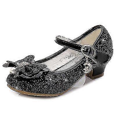 Princess Girls Butterfly Knot High-heel Sequins Non-slip Performance Party Kids Crystal Children's Leather