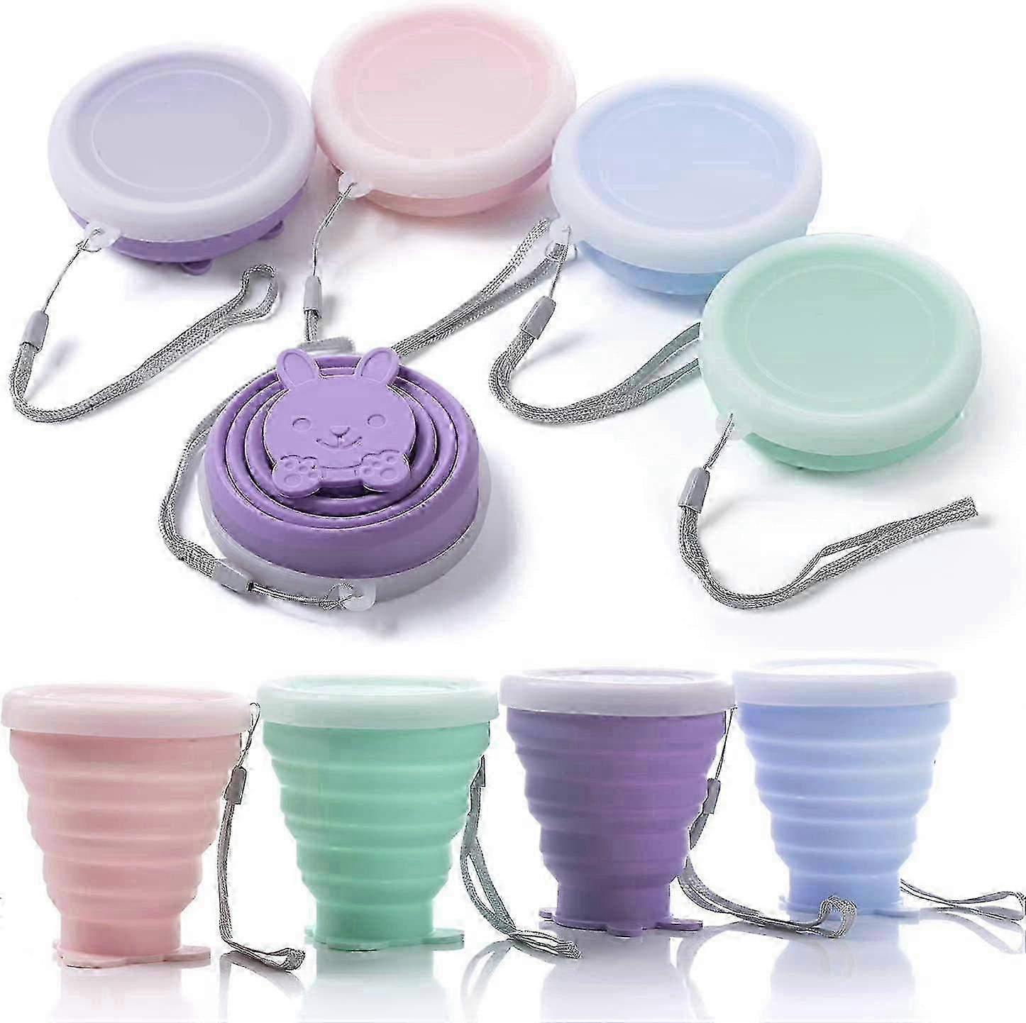 Collapsible Travel Cup, 4 Pcs Portable Folding Camping Mug, Silicone with Lids