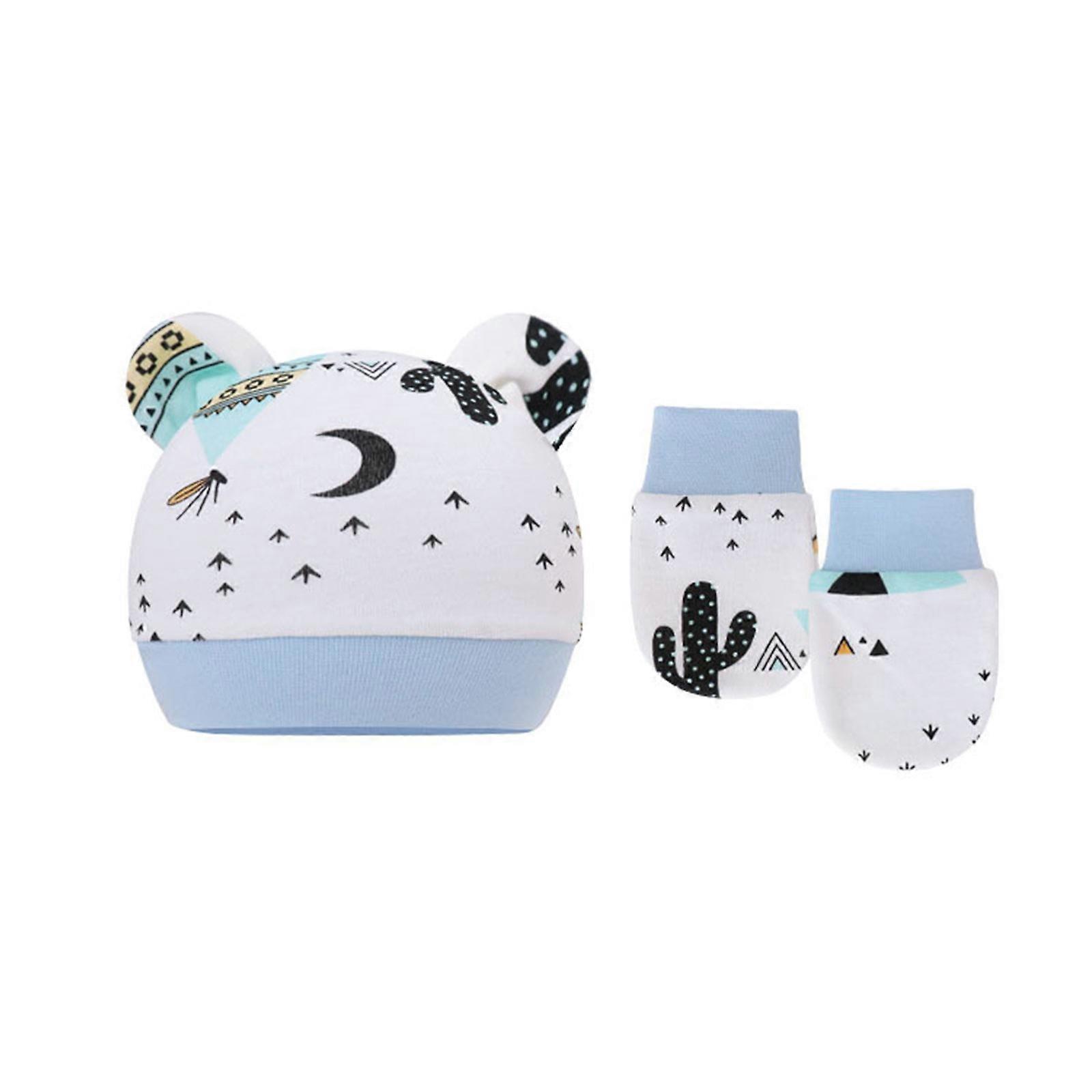 Cozy Baby Newborn Hat Breathable Jacquard Thin Hat & Gloves for w/ Bear Ear Beanie Skin Friendly Hand Wash Summer Spring