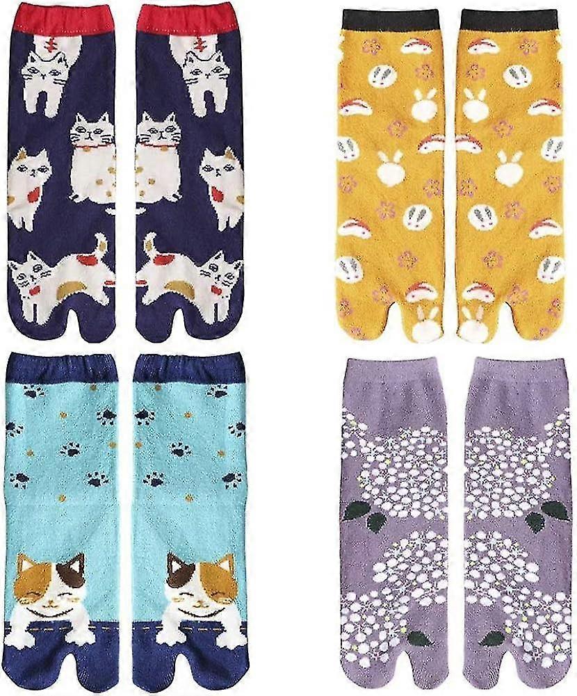 Women's 4-Pairs Pack Slippers Split Toe Tabi Ninja Socks in Blue, Size 7-9, Perfect Gift for Family or Friends