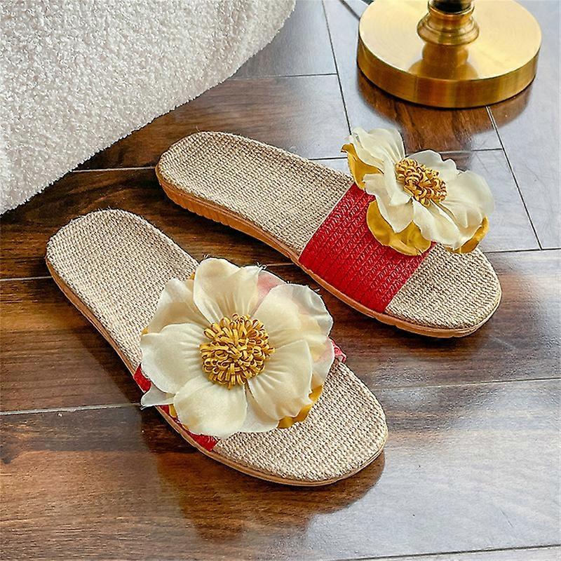 Slippers Flax House Slippers Comfy House Shoes Cozy Open Toe Slipper Unisex Tatami Slippers Open Toe Slippers Skidproof Summer Sandals for Indoor Outd