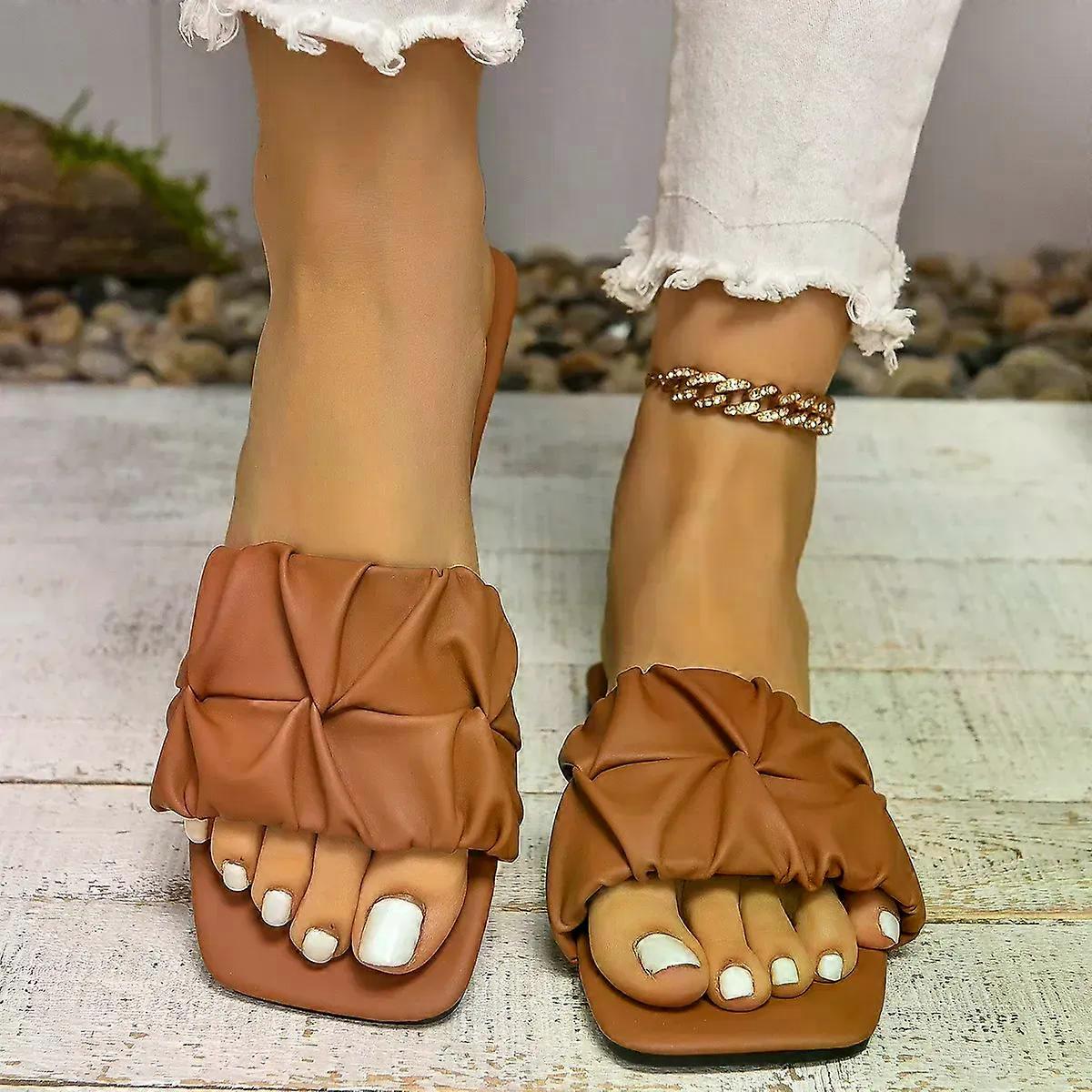 Summer Slippers for Women Flip Flops Flats New Pleated Korean Slippers Women Sandals Green Slip on Shoes Big Size 35-42