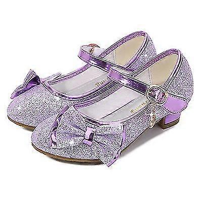 Girls Princess Shoes Butterfly Knot High-Heel Shiny Flower Girl Par...