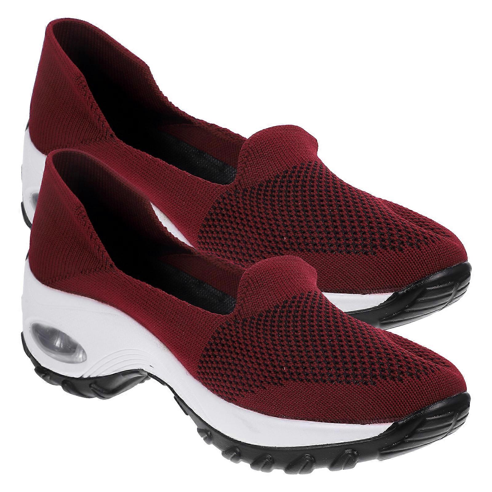 Comfortable Women Shoes Shallow Mouth for All Occasions Dark Red Breathable 2 Pairs
