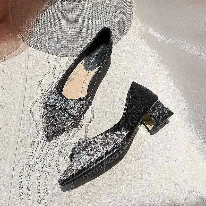 Women's Casual Pointed Toe Low Heels With Bowknot Slip On Chunky Block Heel Pumps Shoes for Women Comfortable Business Office Work Pumps Dressy Shoes