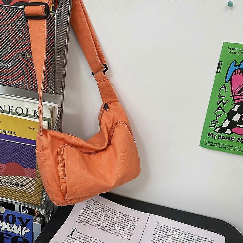 Teenager Casual Canvas Textile Ita Side Sling Shoulder Bag Y2k Grunge Medium Size Fabric Cloth Soft Square Crossbody Pouch Bag