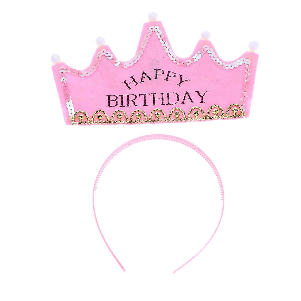 Glitter Nonwoven Fabric Crown Headband Headwear Baby Kids Party Headdress Hair Accessories for Baby Shower Banquet (Pink)