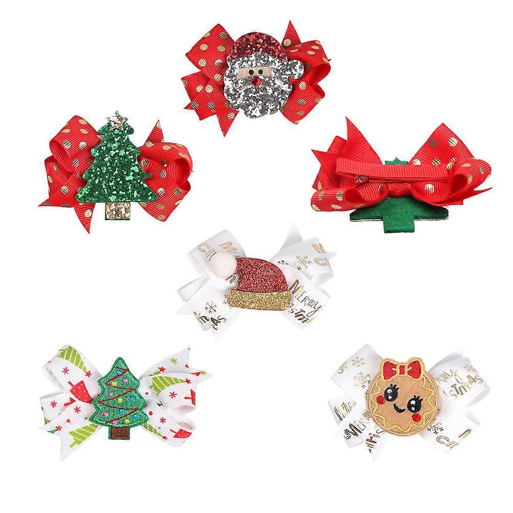 Glitter Sequin Hair Bows Christmas Accessories For Kids Bowknot Barrettes Assorted Color Party Costume 6Pcs