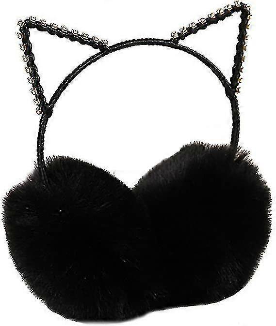 Glitter Crystal Cat Ears Winter Earmuffs Warm Plush Ear Warmers For Women Girlsblack
