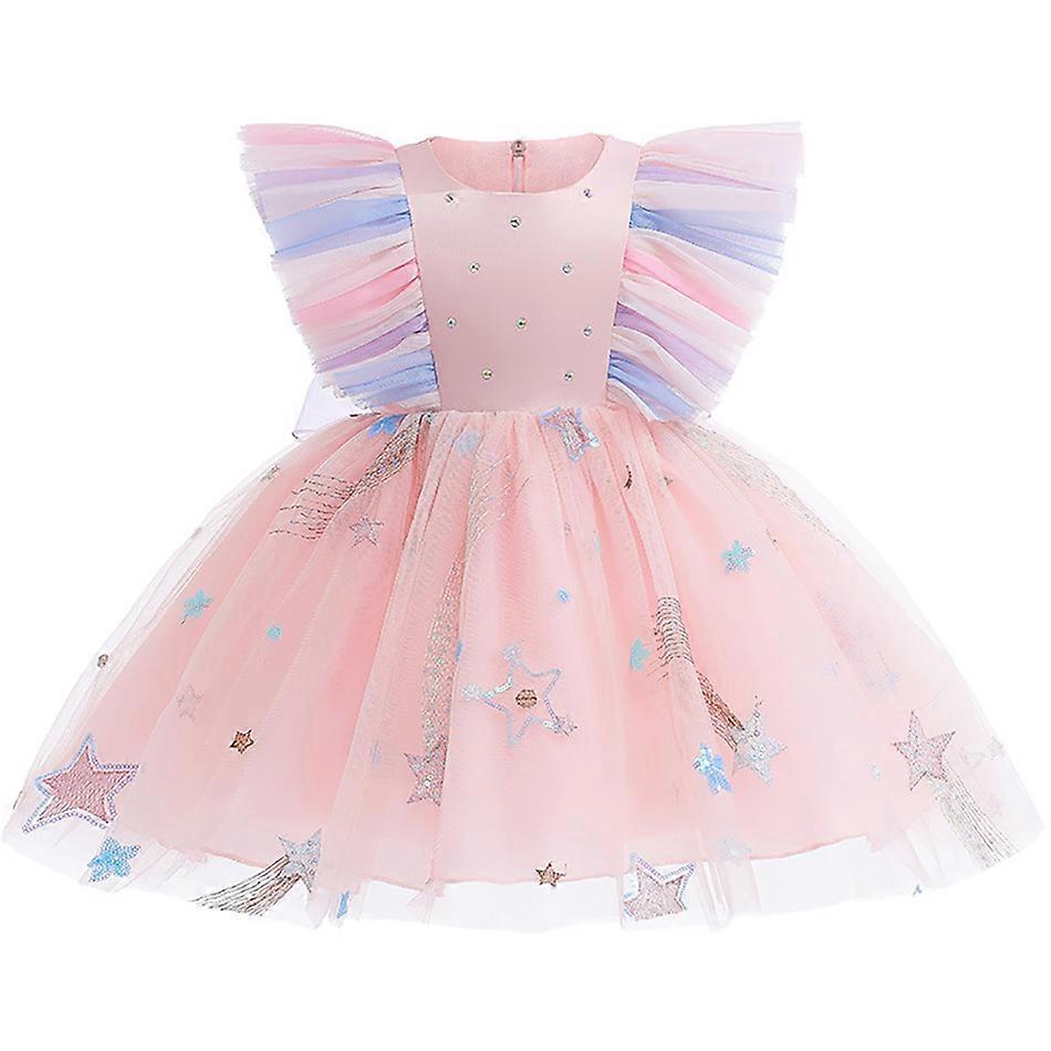 Sequin Baby Girl Dress Sleevesless Flower Girl Dress Knee Length Dresses For Girls Bow Puffy Pageant Fancy Wedding Gown