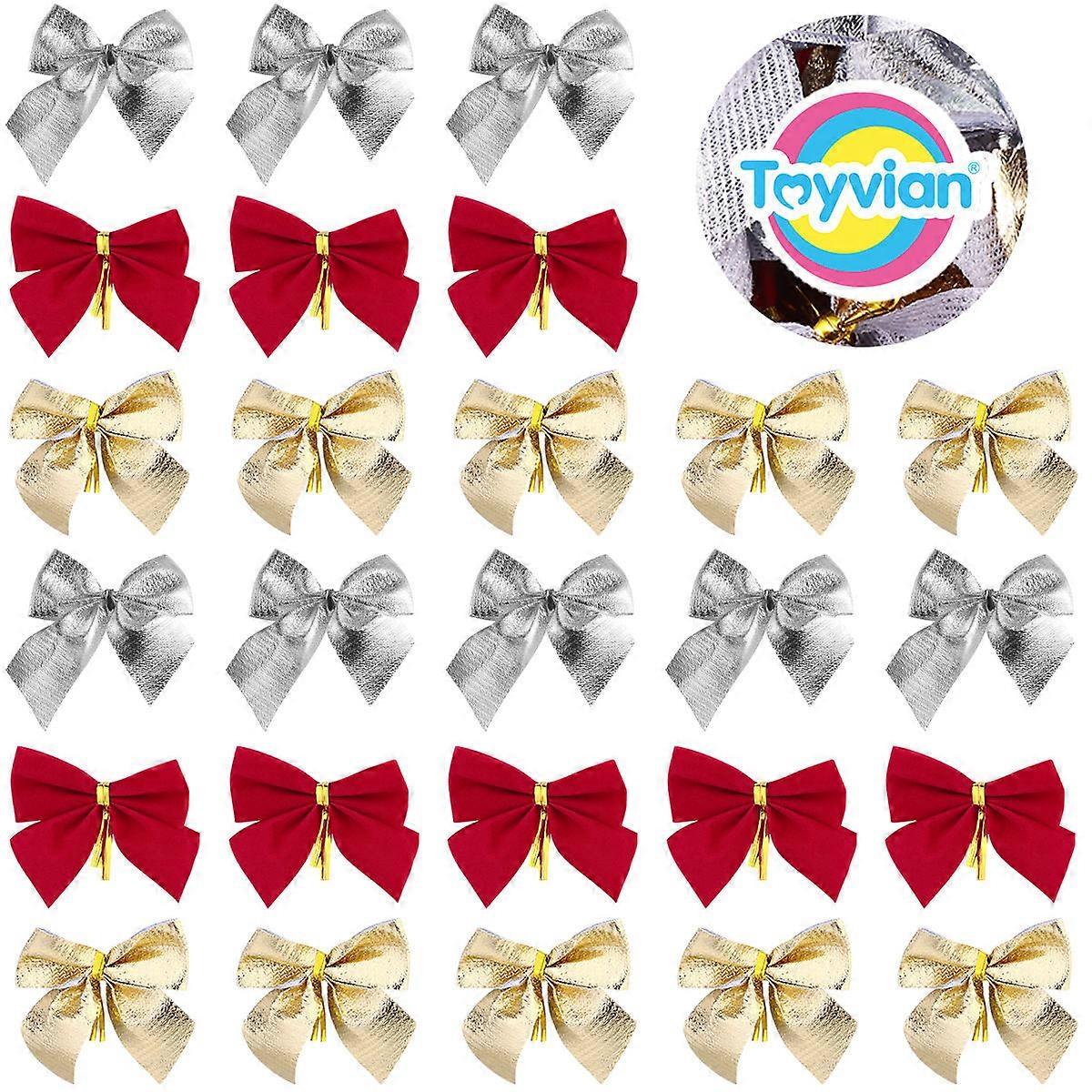 Glitter Bowknots Christmas Tree Ornaments Pendant For Holiday Home Party Supplies Assorted -Friendly 36Pack
