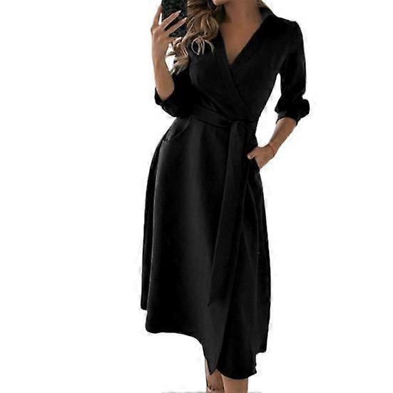 Female Floral Printed Deep V-neck Dress Vintage Belt Dress