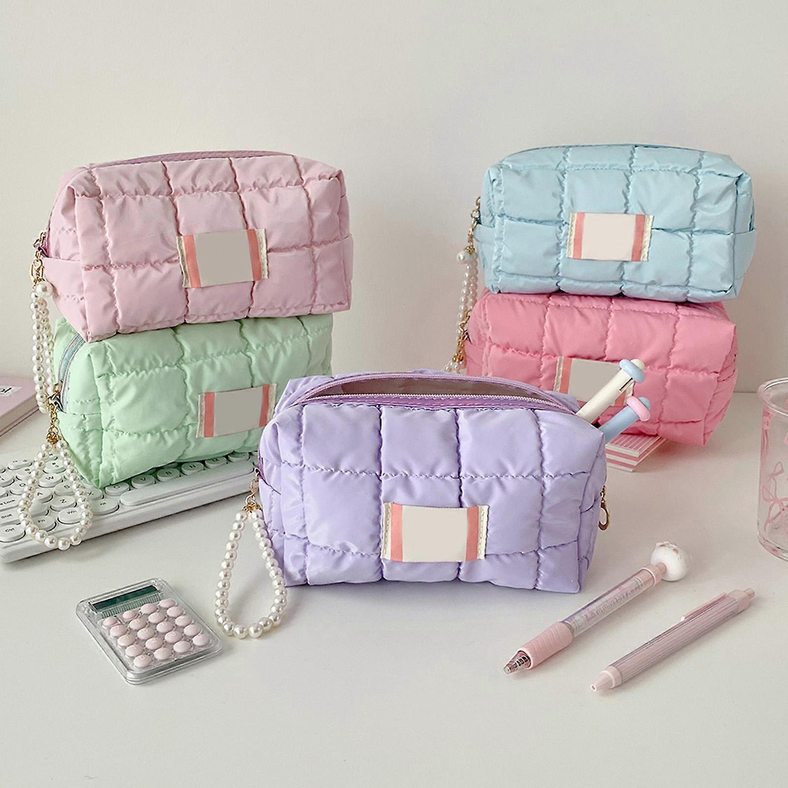 Quilted Pencil Pouches School Office Stationeries Supply Bag Pen Box Pencil Case For Kids Students Desktop Organizers Purple
