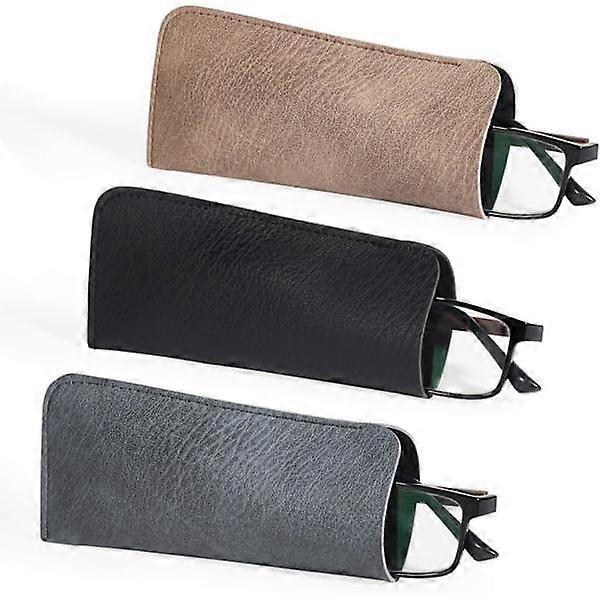 Soft Eyeglass Case 3-Pack, PU Leather Case Glasses Reading Bag Women Men Kids.
