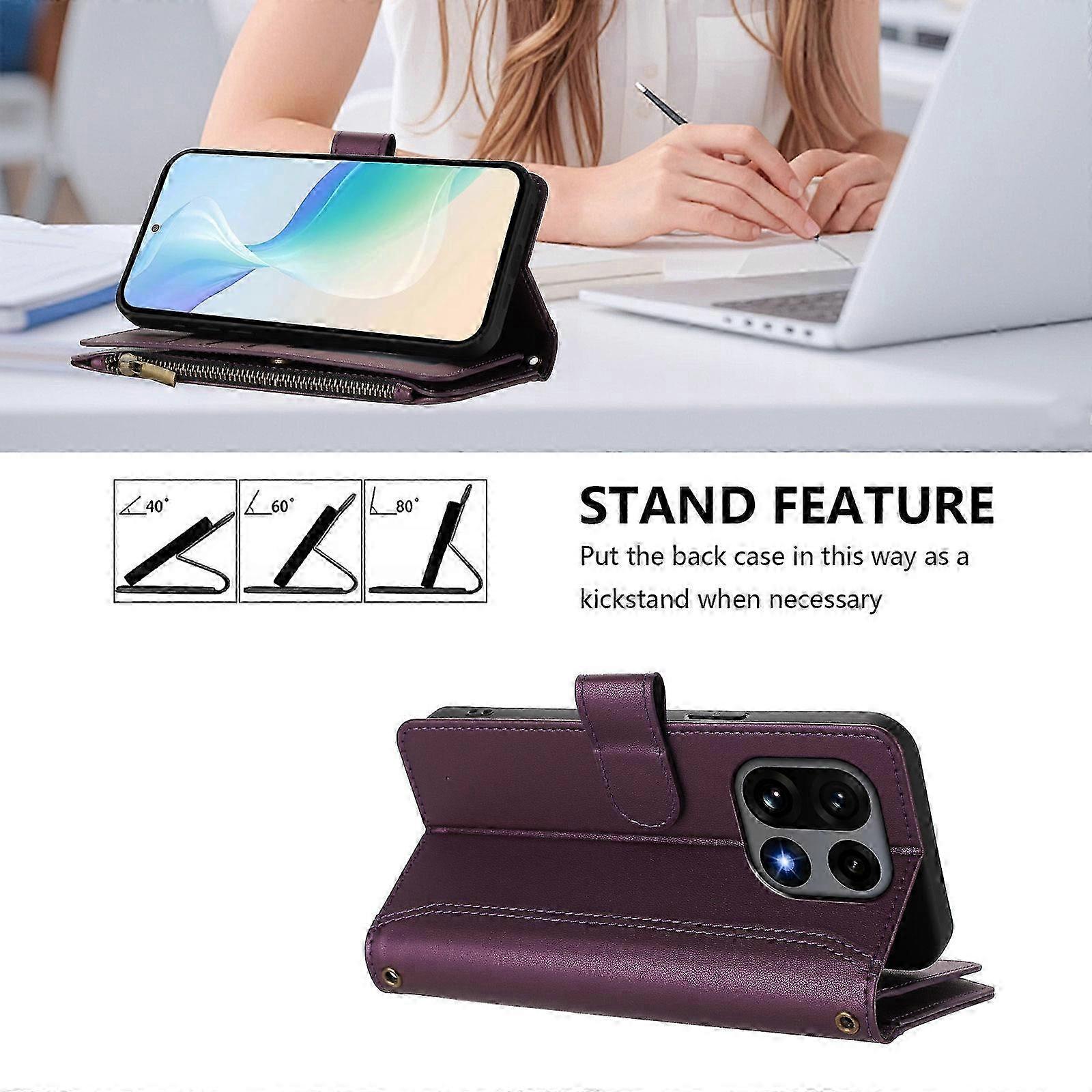 Compatible For OnePlus 15 5G Leather Case 9 Card Slots Zipper Wallet Stand Phone Cover with Wrist Strap