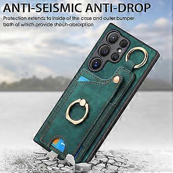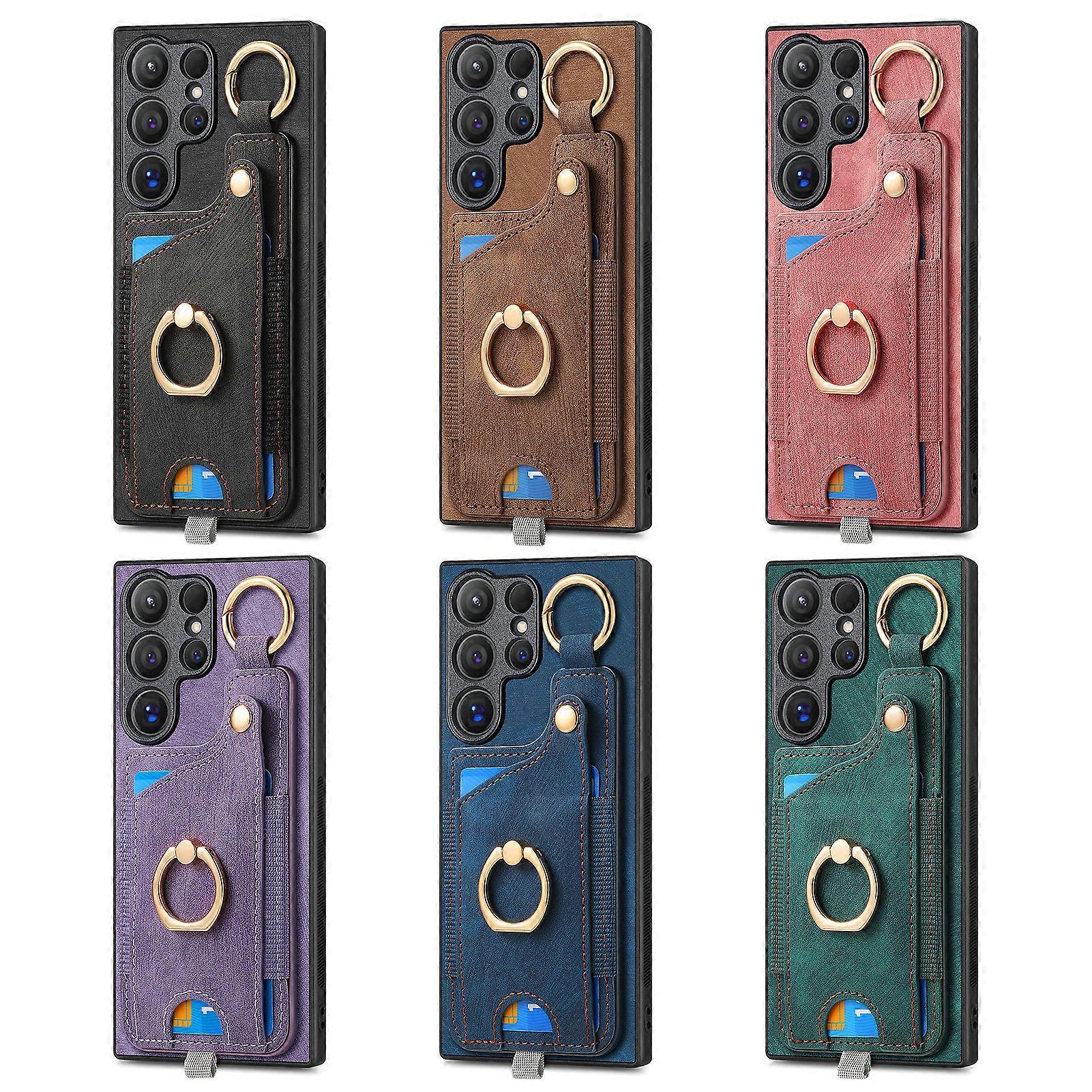 Retro 2-in-1Phone Case for Samsung Galaxy S24 Wallet Cover, RFID Credit Card Holder Ring Stand, Shock-proof Full Protective Case