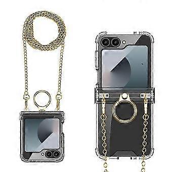 Transparent Case For Samsung Galaxy Z Flip 6 with Hinge Protection & Ring Holder, Four Corners Shockproof Case with Crossbody Lanyard