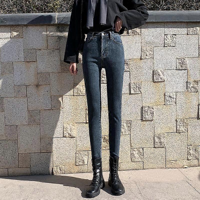 Women Spring and Autumn Large Size Denim Jeans Women's High Waist Stretch Nine-point Casual Pants