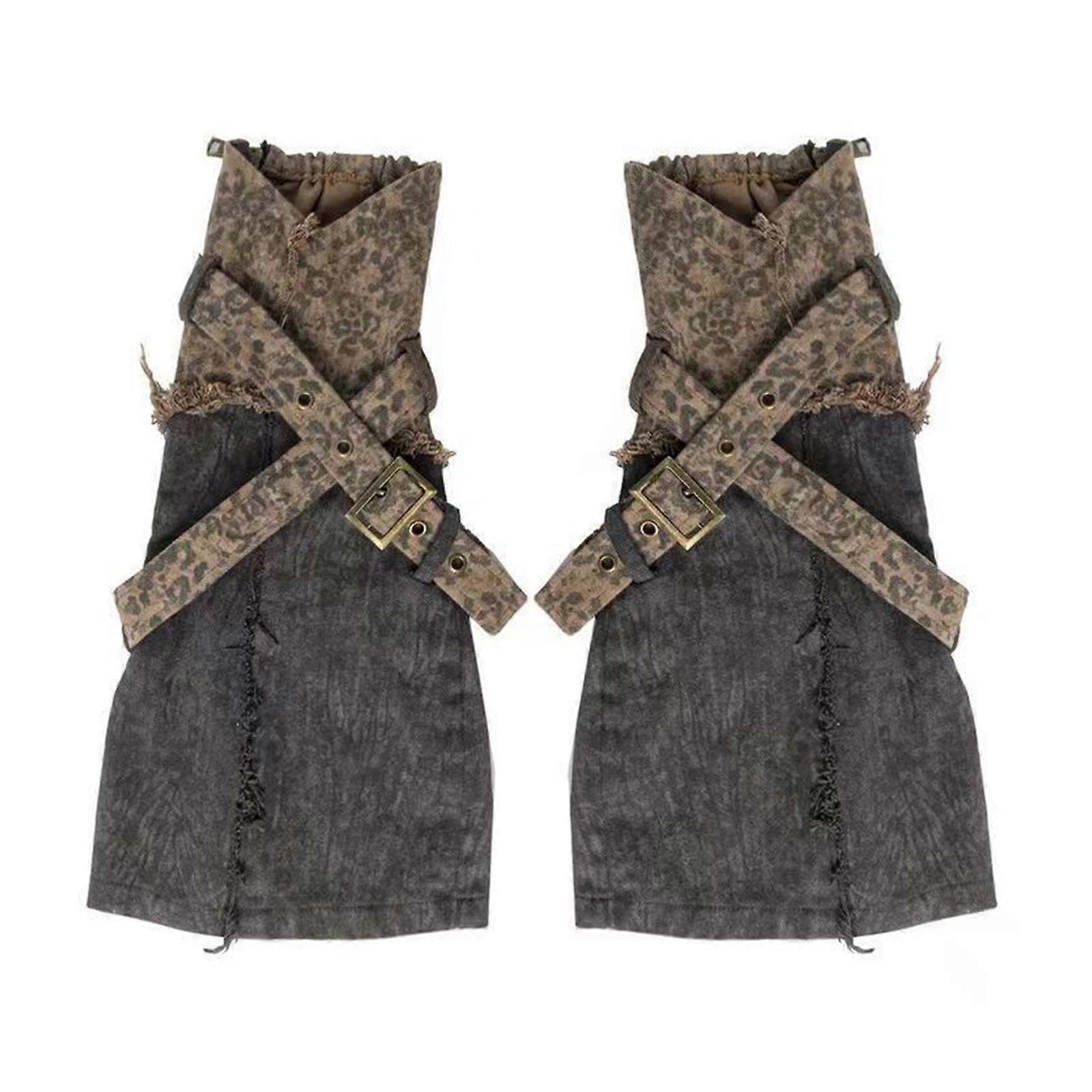 Women Fashion Harajuku Distressed Washed Leg Cover Vintage Crisscross Buckled Strap Punk Flared Long Socks Leg Warmers