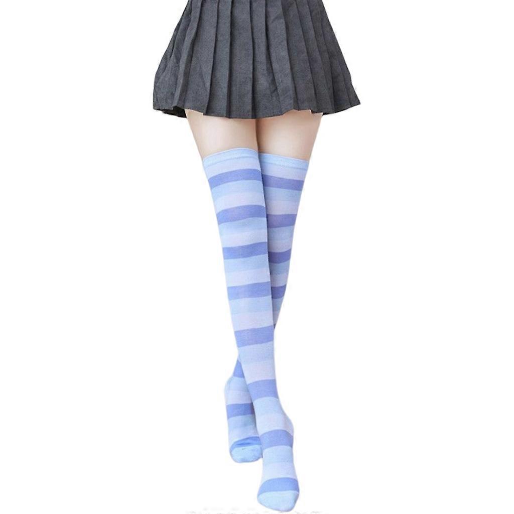 Women Opaque Hosiery Warm over Knee Socks Colorful Striped Knee High Socks