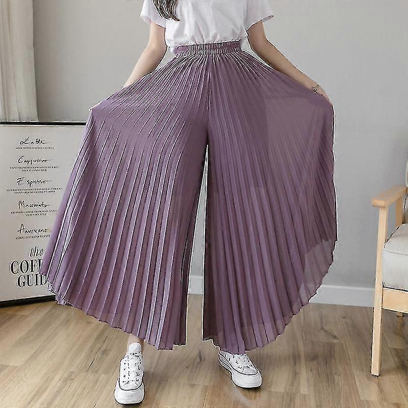 Women Elegant Chiffon High Waist Wide Leg Pants Casual Korean Fashion Pleated Loose Trousers Clothes Comodi Pantalones De Mujer