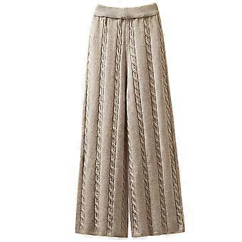 Women Elastic High Waist Casual Loose Straight Pants Twist Knit Solid Color Thicken Wide Leg Lounge Long Pants Trousers Khaki