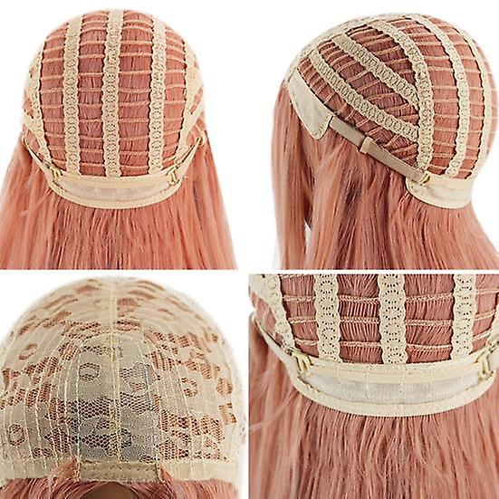 Women Long Curly Synthetic Hair Rose Net Pink Wig Party Extension Hairpiece