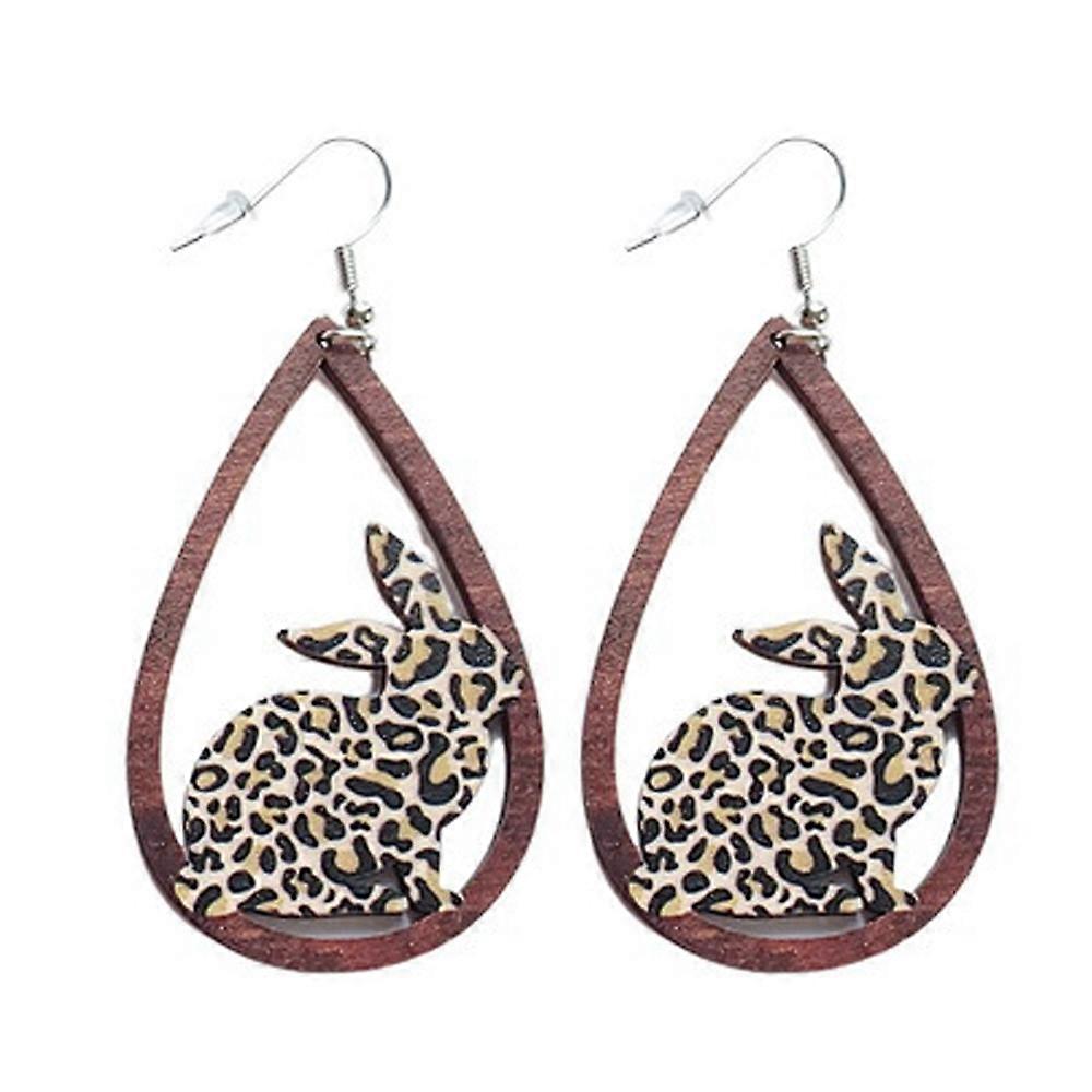 Women Easter Bunny Teardrop Hollow Out Colorful Rabbit Earrings Double Sided Wooden Earrings
